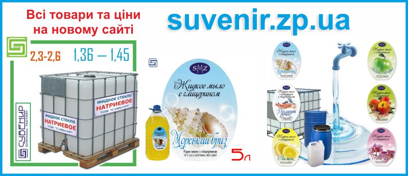 ТОВ «Сувенір» - запорізький виробник рідкого скла, миючих засобів та пластифікаторів для виробництва кераміки
